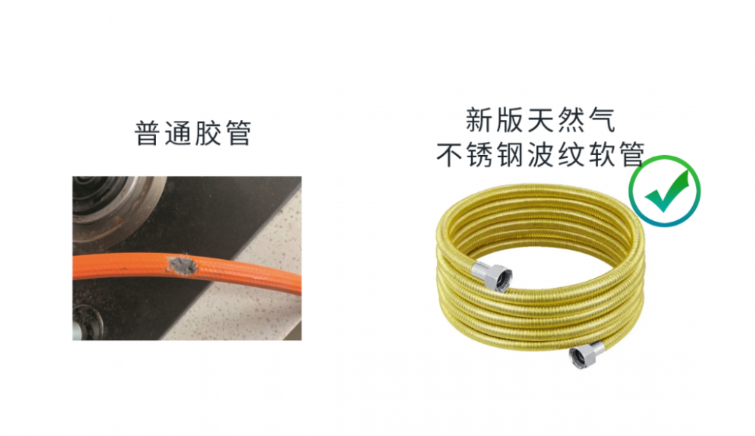 如果家里使用的灶具连接管是胶管,请更换成天然气专用不锈钢波纹软管,防鼠咬、寿命6-8年且更安全。
