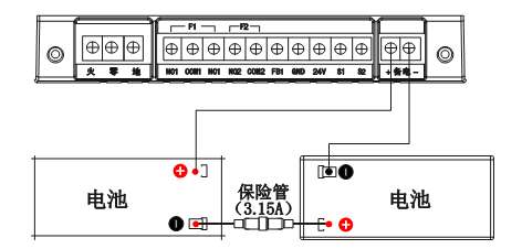 4、电池在安装结束后,请用万用表的直流电压档测量备电端子的“+”“-”之间的电压,新电池正常电压应该大于24V。