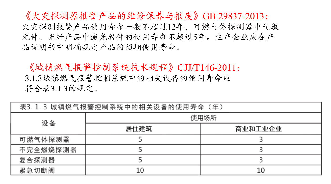 燃气报警控制系统相关设备寿命: